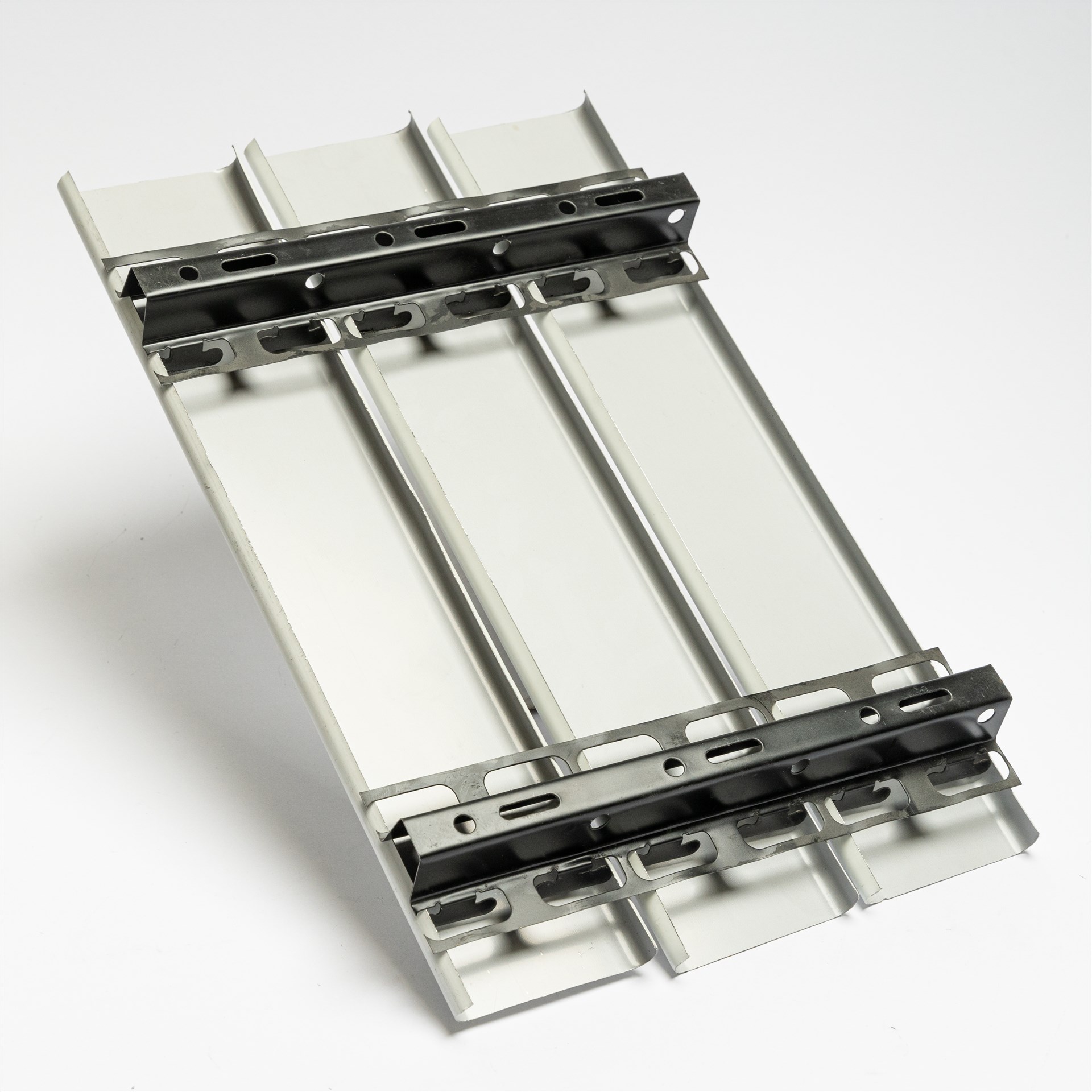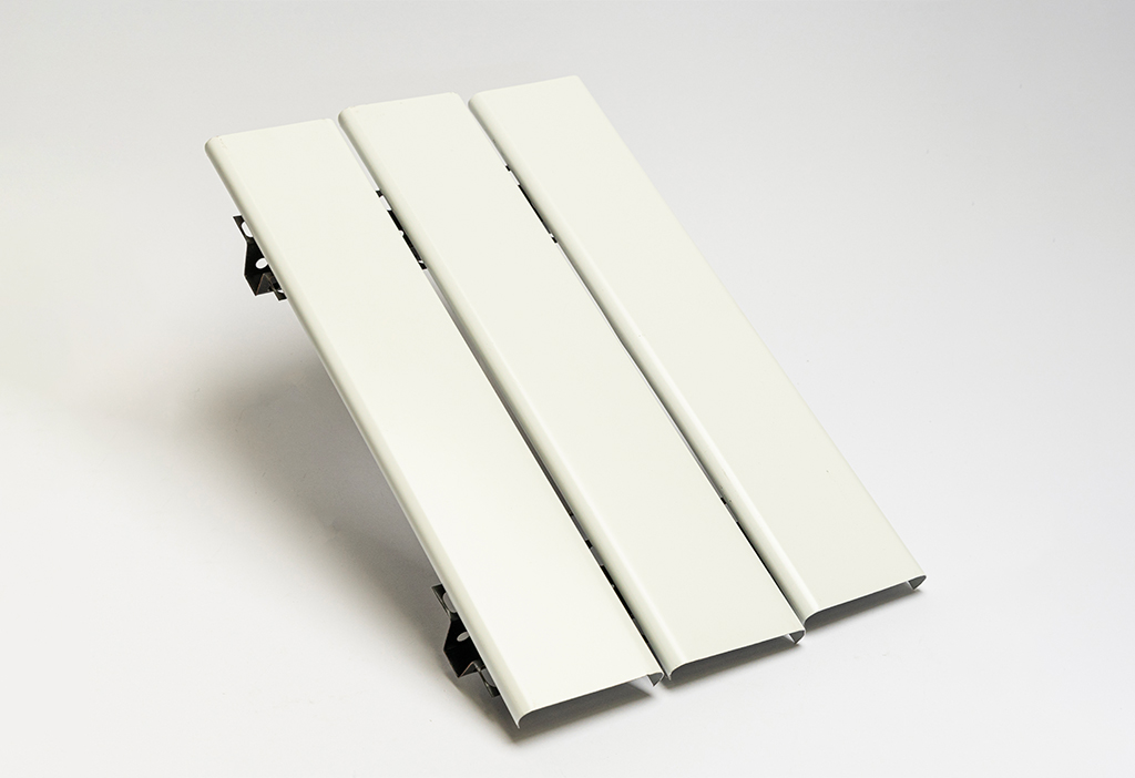 Le doghe con bordo arrotondato si installano tramite aggancio a scatto, mentre quelle con bordo squadrato vengono posate ad incastro su traversine portanti in acciaio zincato o preverniciato, disponibili nei colori nero o testa di moro nel caso di installazione a scuretto aperto.