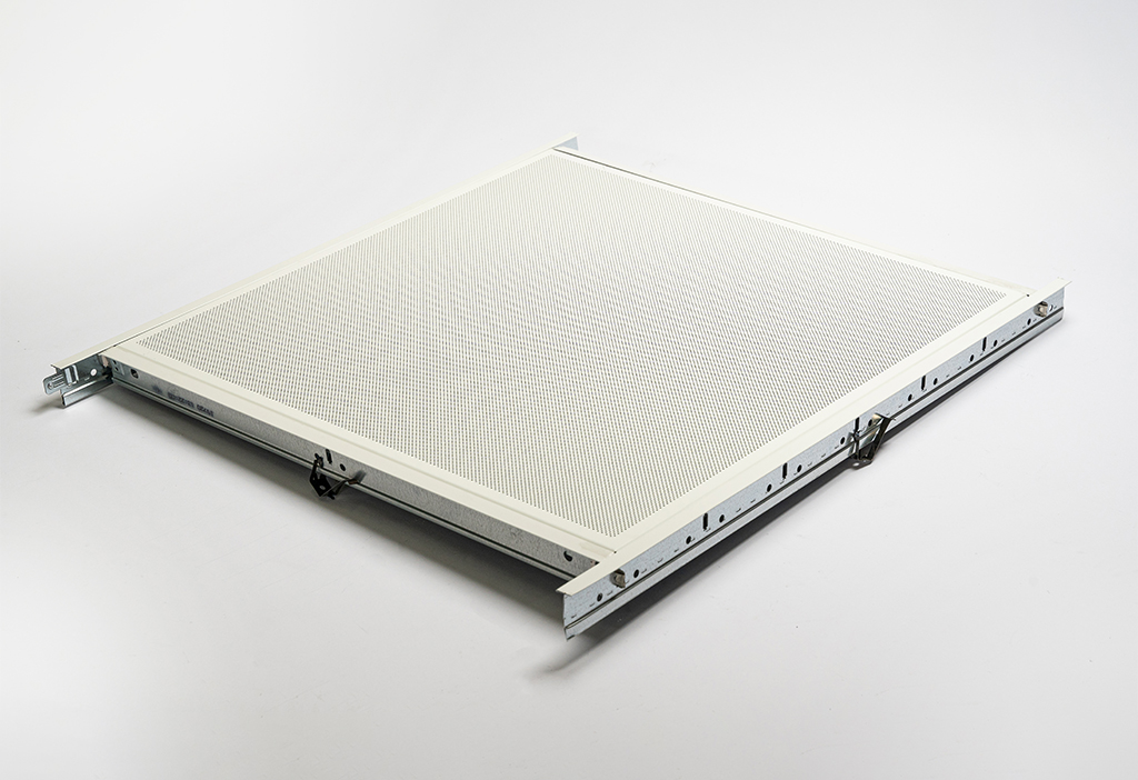 Costituita di un profilo perimetrale in alluminio estruso con inserita una lastra in c/gesso standard o idrorepellente.